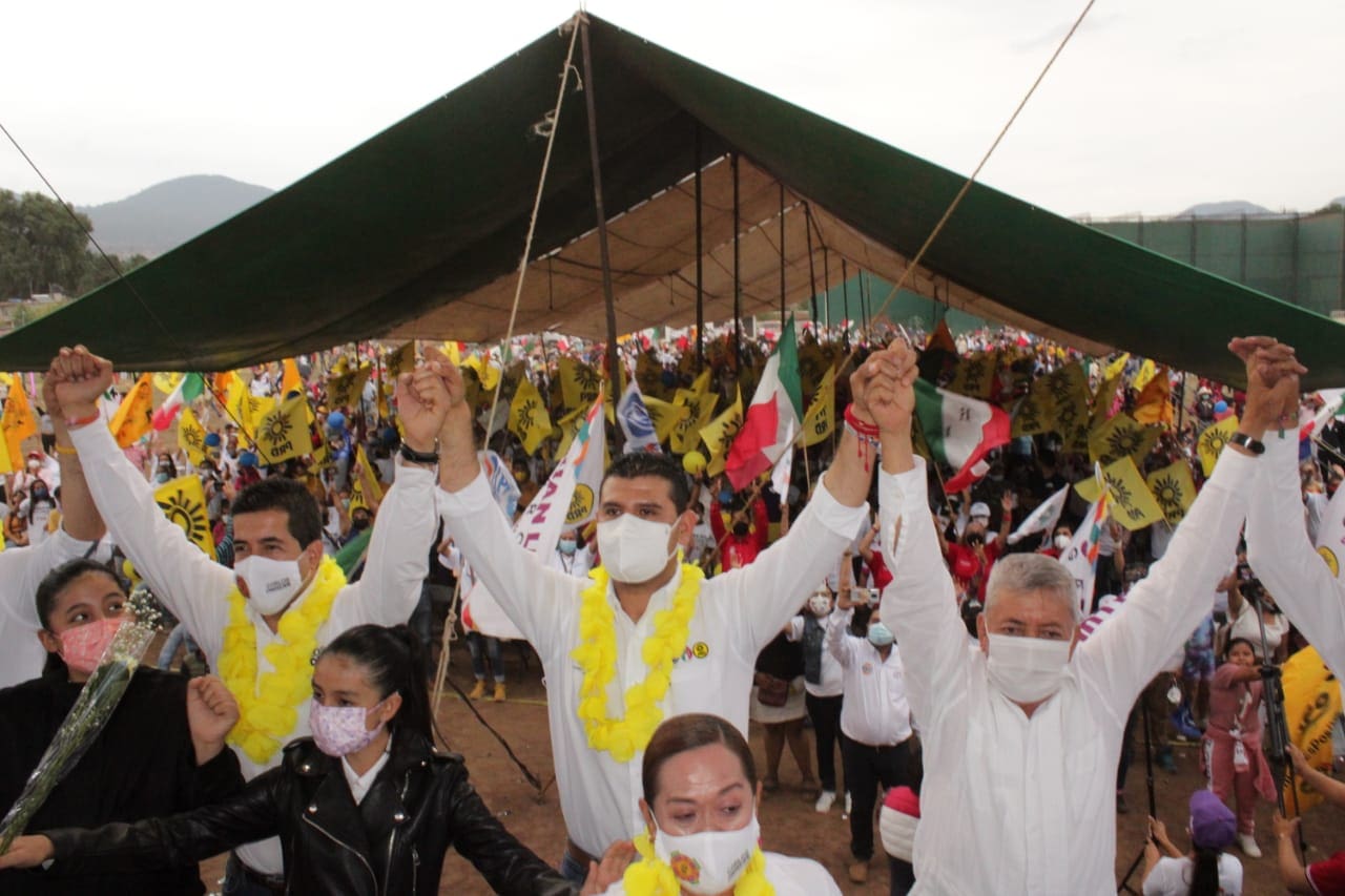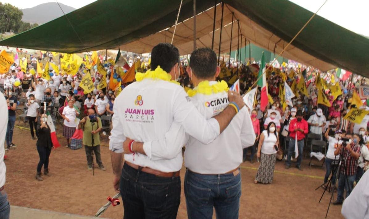 En un emotivo cierre de campaña junto a Carlos Paredes, candidato a presidente municipal y a Juan Luis García, candidato a diputado local del Distrito XVIII, Tavo Ocampo llamó a cerrar filas en torno a las candidaturas del equipo que han integrado los partidos PRI, PAN y PRD.