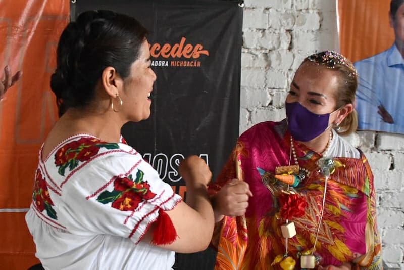 Cuanajo, Michoacán a 23 de mayo de 2021.-En su recorrido por la geografía michoacana, en esta ocasión por Cuanajo, tierra de artesanos de la madera, Mercedes Calderón urgió a los pobladores de estas tierras a votar con el corazón y la razón: “Todos los michoacanos merecemos una mejor gobernabilidad, verdadera transparencia, justicia, educación, salud, infraestructura, una visión de país unido y el ánimo estatal bien arriba, y la herramienta para lograr este cambio es el voto”.