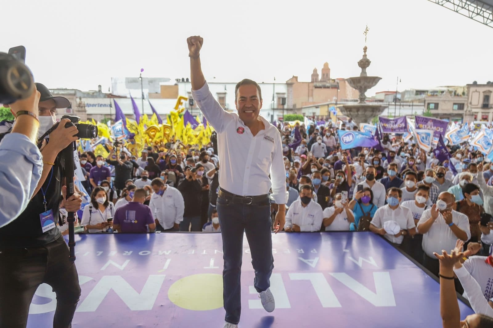 “Yo quiero un Michoacán en paz”, refrendó el candidato común a la gubernatura, al participar en el cierre de campaña de Alfonso Martínez, candidato del PAN y PRD a la Presidencia Municipal de Morelia, bajo una atmósfera política de entusiasmo contagioso de las y los simpatizantes que se dieron cita en la plaza Valladolid de Morelia.