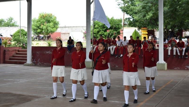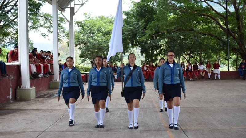 Tuzantla. Mich. La alcaldesa Jazmín Arroyo Martínez, acudió esta mañana al Concurso Interno de Escoltas de la Escuela Preparatoria COBAEM #41 de este municipio, donde diferentes grupos de jóvenes alumnos, participaron en esta actividad.