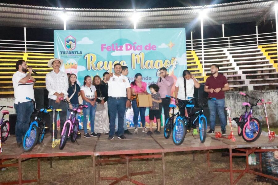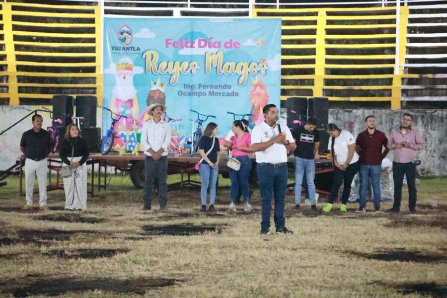 Tuzantla, Michoacán, 6 de enero de 2026.- El alcalde Fernando Ocampo Mercado presidió el evento organizado por el Ayuntamiento de Tuzantla en la cabecera municipal con motivo del Día de Reyes.