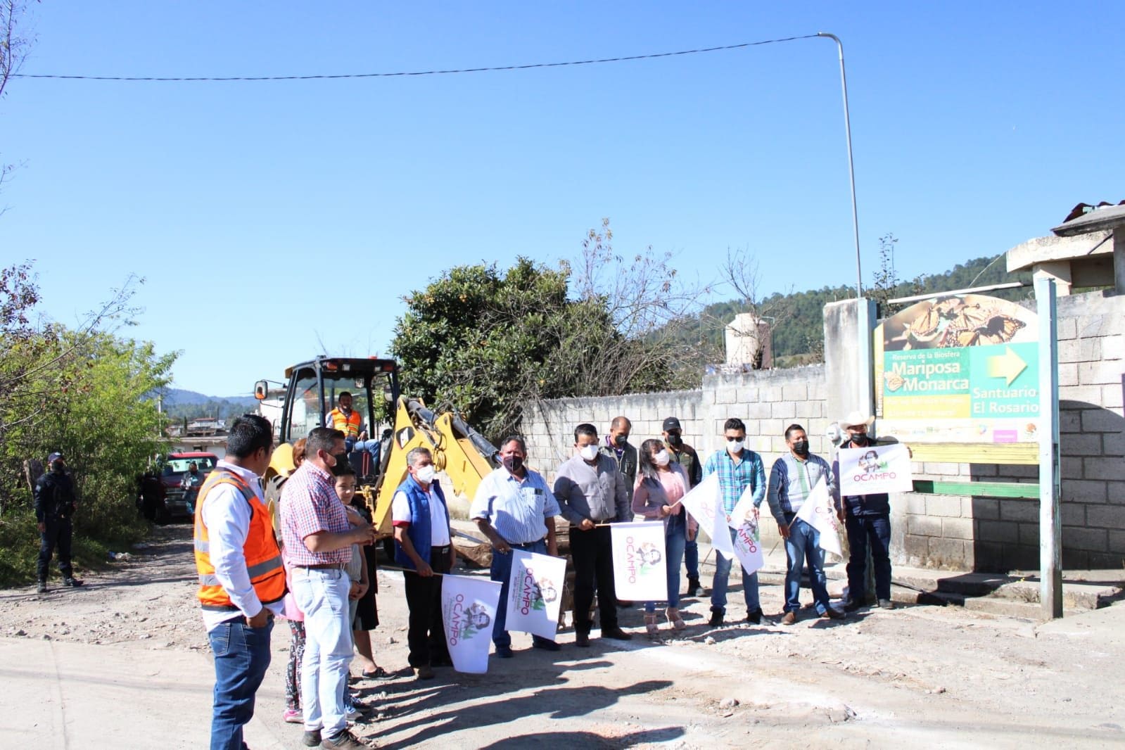 Ocampo, Mich. El presidente municipal, Amado Gómez; la síndica municipal, Magdalena Díaz Vázquez secretario del ayuntamiento, Omar Daniel Colín Alanís, integrantes del cuerpo de regidores y vecinos del lugar dieron el banderazo de arranque de la obra de drenaje y pavimentación en la localidad de Las Trojes, esto bajo la supervisión de la dirección de obras públicas.