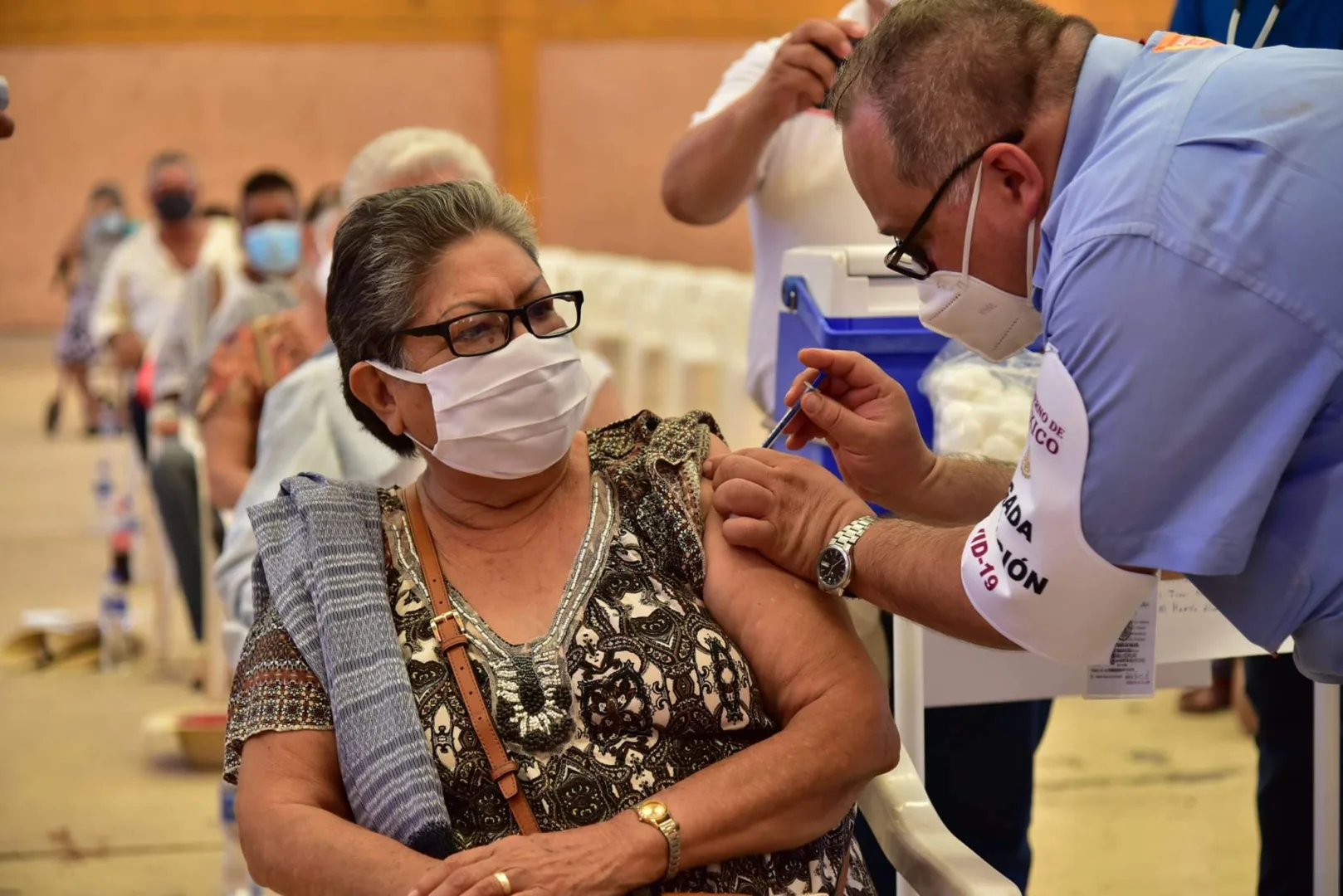 Con la intención de proteger la vida de nuestros adultos mayores de 60 años, este martes siendo las 12:37 hrs se aplicó la primer vacuna contra el nuevo Coronavirus en Tiquicheo, la señora María Guadalupe Jaimes fe quien recibió la primer dosis de 0.5 ml de la vacuna CanSino Biologics.