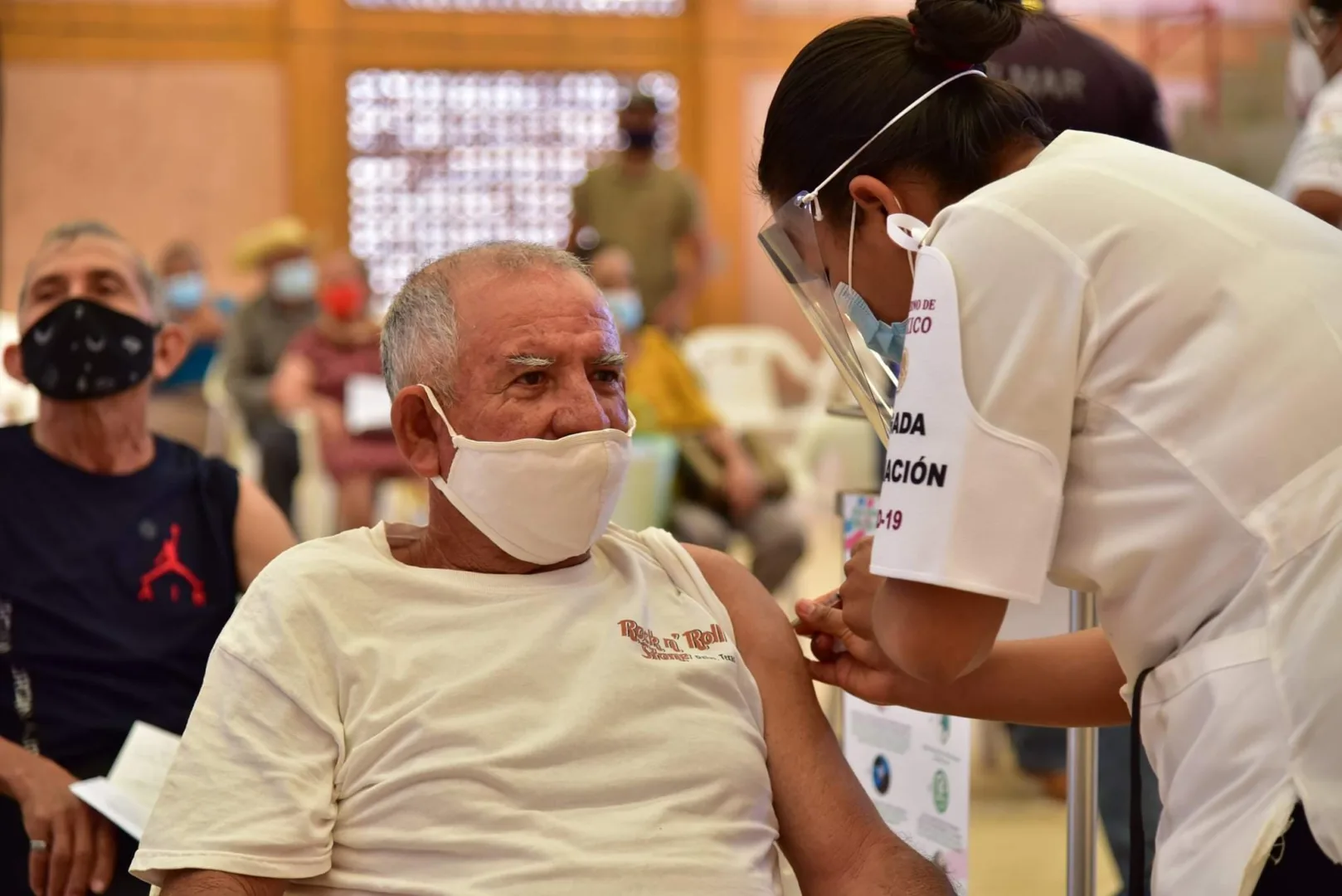 Cientos de personas acudieron desde tempranas horas del día para tomar su turno mientras esperaban el arribo del lote de vacunas anticovid, para lo cual el Ayuntamiento que preside la C. Hortencia Sánchez apoyó en todo momento con personal médico y mobiliario para la comodidad de las personas mientras esperaban su turno, además se les otorgaron insumos como agua y un refrigerio a quienes se dieron cita para recibir la dosis.