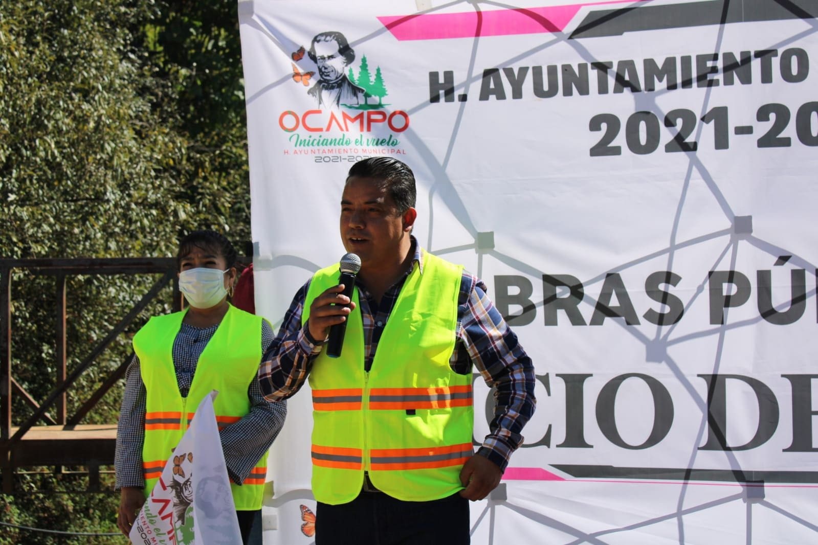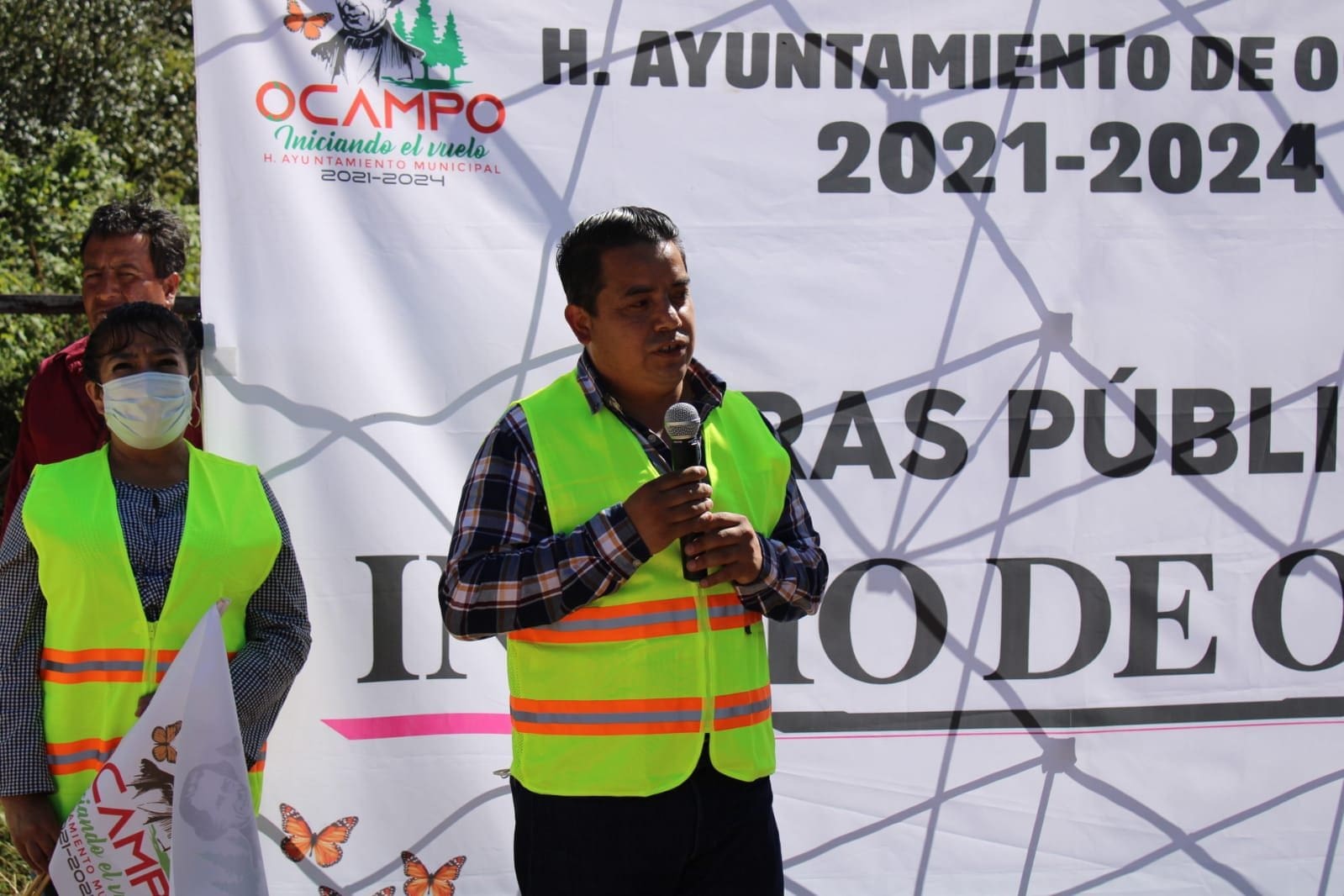 Ocampo, Mich.- El H. Ayuntamiento que encabeza el presidente Amado Gómez, acompañado de la síndica municipal, Magdalena Díaz Vázquez, el secretario del ayuntamiento, Omar Daniel Colín Alanís, parte del cabildo y personal de obras públicas; se dieron cita en la localidad de Rancho Escondido para dar banderazo de inicio de pavimentación de una camino de dicha localidad.