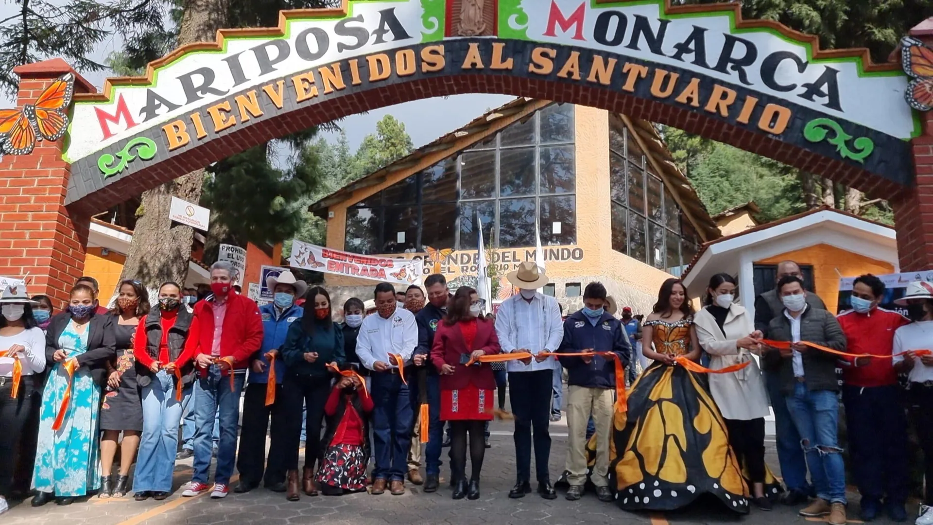El Rosario, Ocampo Michoacán. Autoridades de los tres niveles de gobierno dieron apertura a la temporada 2021-2022 de la Mariposa Monarca, luego de 2 años de operar en menor porcentaje debido a la pandemia, este año, con menos restricciones y cuidando todos los protocolos de salud, se espera una temporada turística con una importante derrama económica para los ejidos de los municipios que integran la reserva de la biosfera Mariposa Monarca.