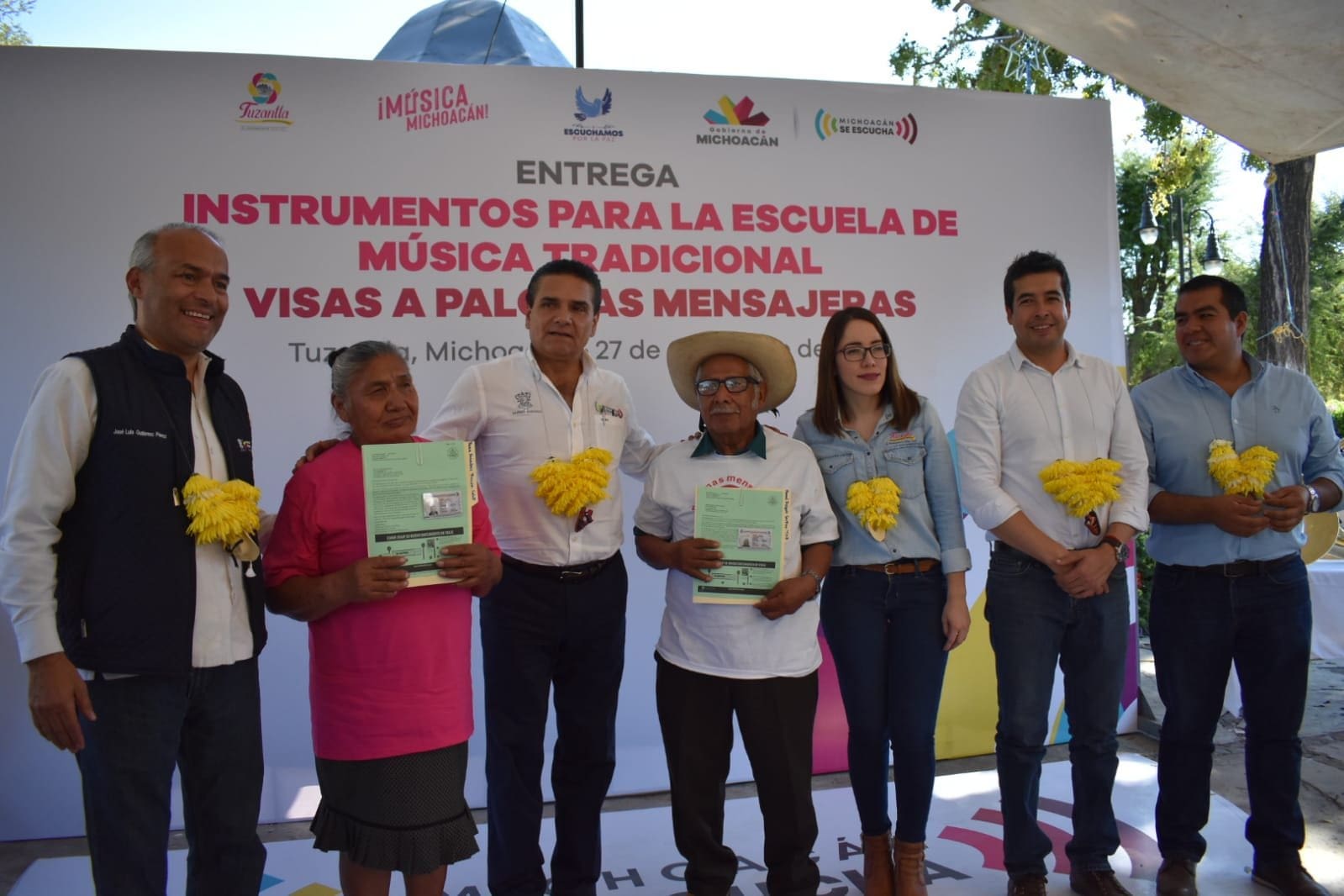Tuzantla. Mich. Adultos mayores del municipio de Tuzantla, podrán visitar próximamente a sus seres queridos que radican en Estados Unidos, esto gracias al programa Palomas Mensajeras, que ha implementado el Gobierno del Estado de Michoacán, por lo que esta tarde se hizo entrega de 56 visas a estas personas de manos del mandatario estatal Silvano Aureoles Conejo y la Presidenta Municipal Jazmín Arroyo Martínez.