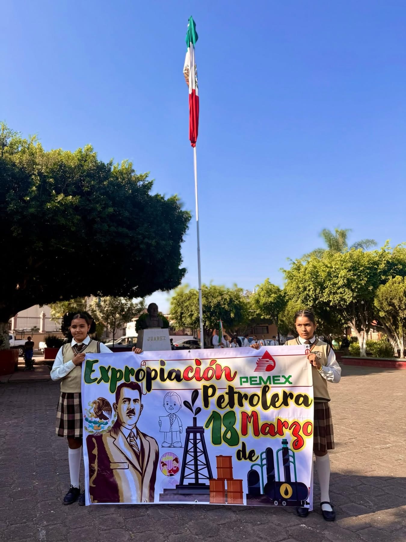 La Escuela Primaria Melchor Ocampo, ubicada en la comunidad de Cerro Colorado, organizó un acto cívico con motivo del 88 aniversario de la Expropiación Petrolera. La institución educativa informó que la actividad se realizó en coordinación con el Ayuntamiento de Juárez.