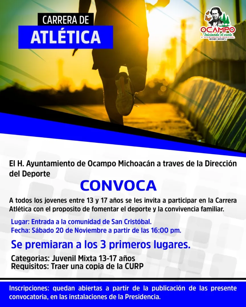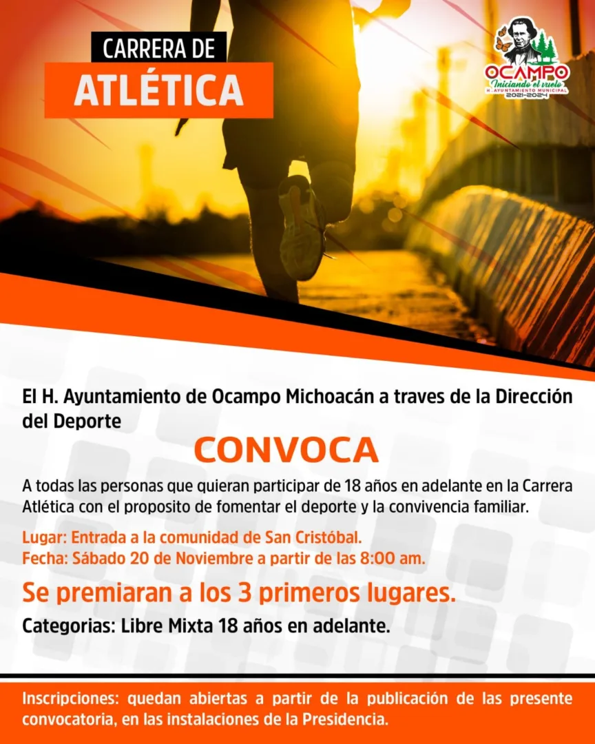 Ayuntamiento de Ocampo realizará carreras atléticas en el marco del inicio de la Revolución Mexicana
