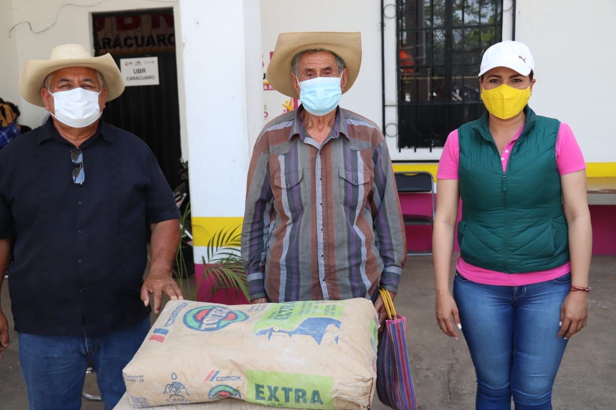 Carácuaro, Michoacán, a 19 de marzo de 2021.- La presidenta municipal, Ely Garduño entregó material para proteger y fortalecer las viviendas en las localidades de Carácuaro, El Cirián y Paso de Núñez.