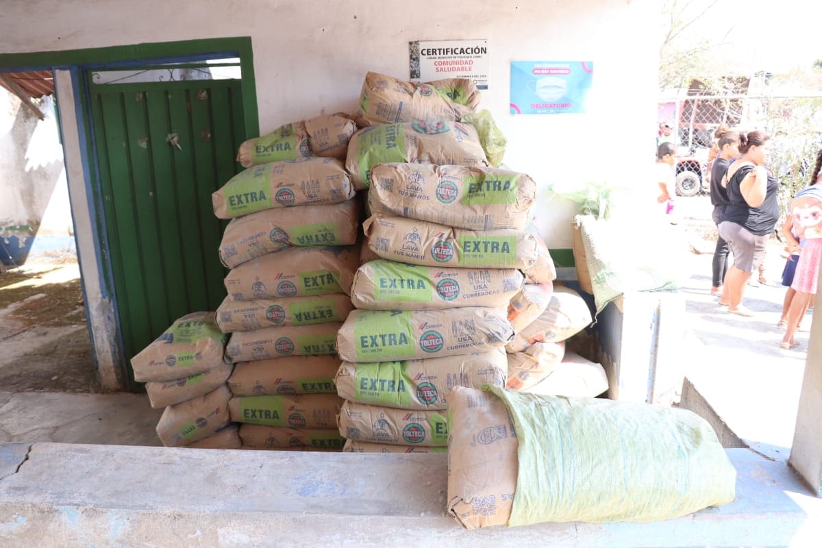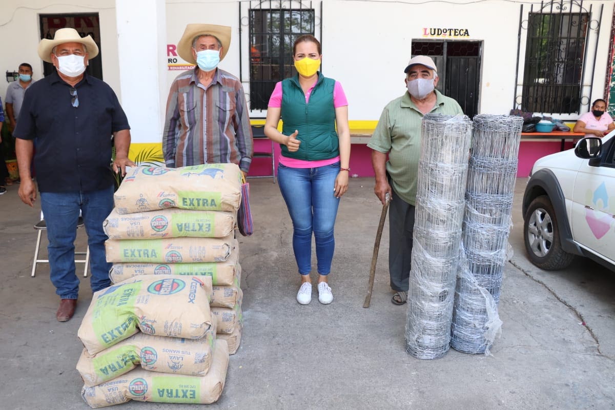 Señaló que como parte del programa Jueves en Tu Casa, las y los beneficiarios de estas localidades recibieron bultos de cemento, arena y malla ciclónica.