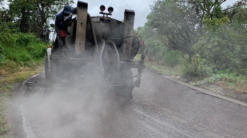 Susupuato, Michoacán. Por instrucciones de la presidenta municipal Zayra Olivares Centeno, se continúan los trabajos de mantenimiento y mejora del acceso principal al municipio.