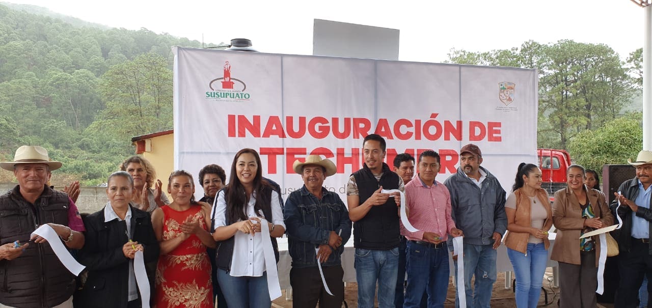 Susupuato, Michoacán. La presidenta municipal Zayra Olivares Centeno hizo entrega de una techumbre en la localidad de Génguaro, cumpliendo así uno de los compromisos de campaña, de apoyar con infraestructura en las escuelas del municipio.