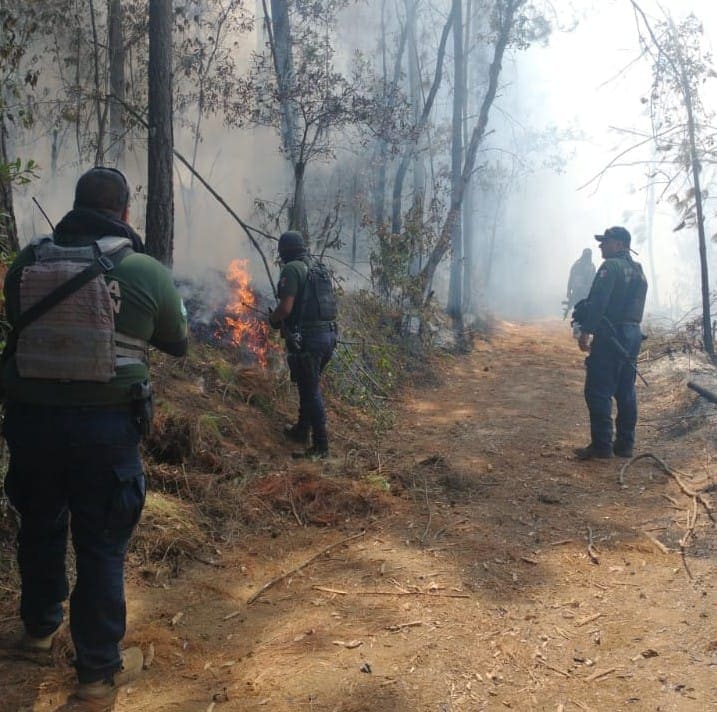 Elementos de la Policía Michoacán en coordinación con brigadistas de la Comisión Nacional Forestal (CONAFOR) mantienen monitoreo en el área ejidal dónde se reportó un incendio, mismo que ya se encuentra controlado en su totalidad.