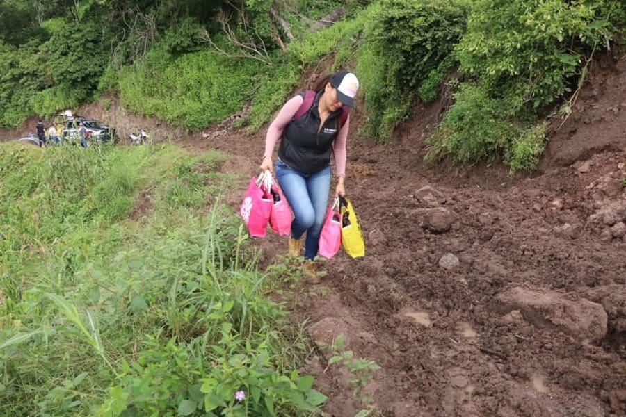 Carácuaro, Michoacán.-Derivado de las intensas lluvias registradas en el municipio de Carácuaro, la mandataria Ely Garduño realizo un recorrido por las comunidades de La Boluda, el Zapote de los Herrera y la Sabina, esto con el objetivo de entregar despensas, artículos de aseo personal, láminas, colchonetas, entre otros apoyos para todas familias que resultaron afectadas tras las intensas luvias.