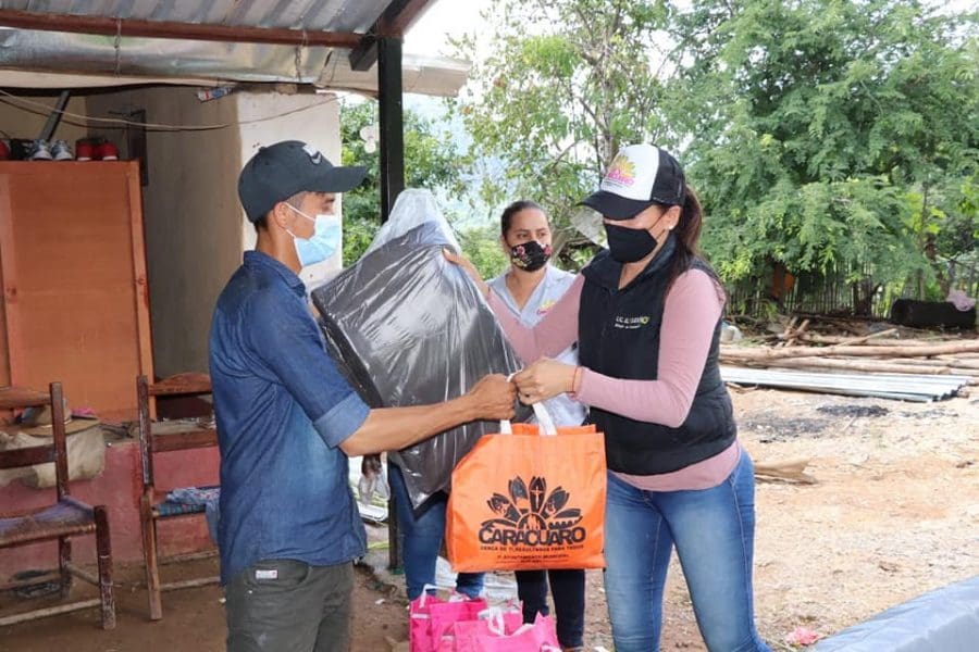 Ely Garduño entrega apoyos a afectados por las lluvias en Carácuaro