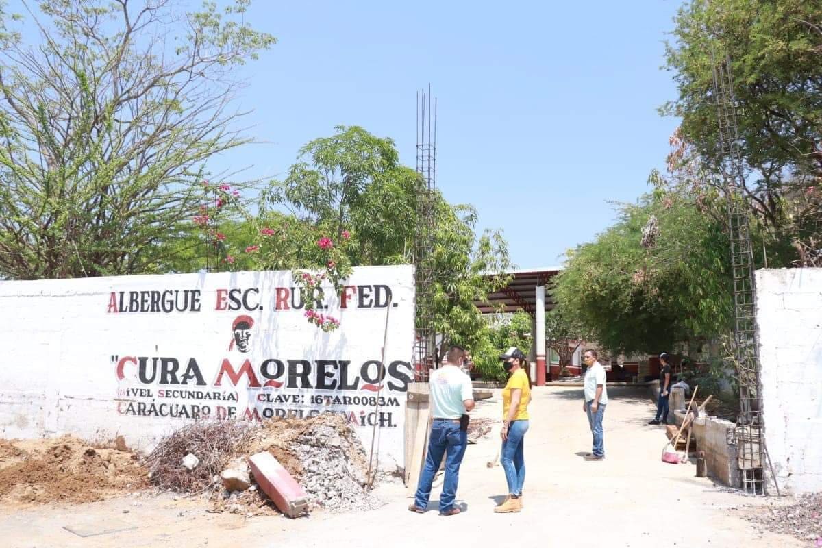 De igual manera supervisó la construcción de la fachada del albergue de nivel secundaria, así como la construcción de la Cancha de Usos Múltiples de la Escuela Primaria José María Morelos.