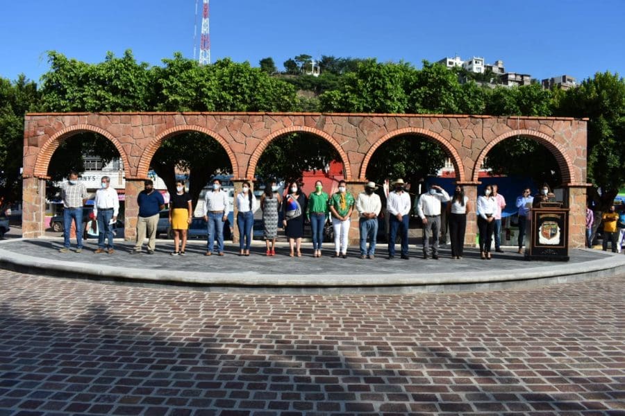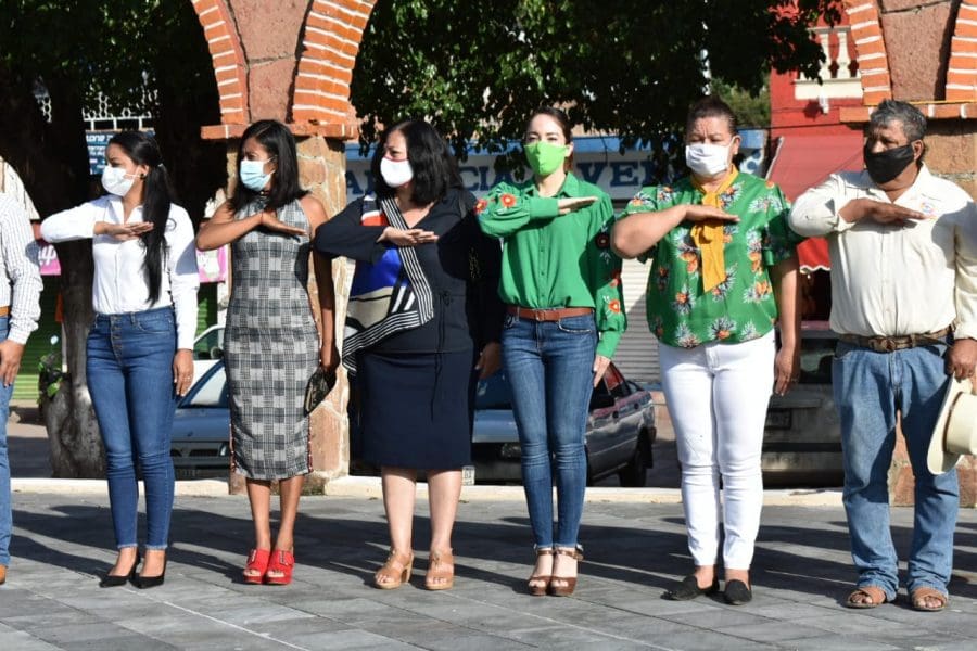 Tuzantla, Michoacán. La presidenta municipal Psic. Jazmín Arroyo Martínez acompañada de más autoridades municipales, encabezó el acto cívico para conmemorar el CCLV aniversario del natalicio de José María Morelos y Pavón El Siervo de la Nación.