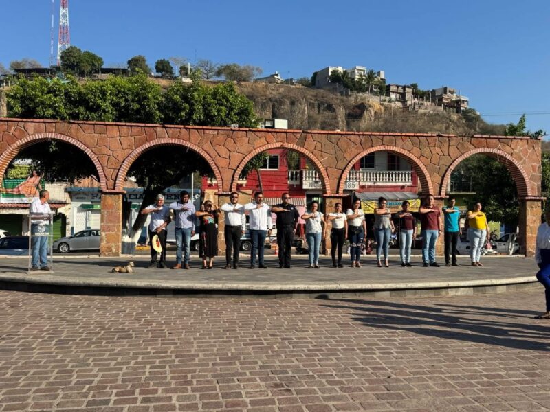 El edil estuvo acompañado por el Secretario Municipal, directores y personal de diversas áreas operativas del ayuntamiento, quienes participaron activamente en la ceremonia realizada en el espacio público correspondiente.