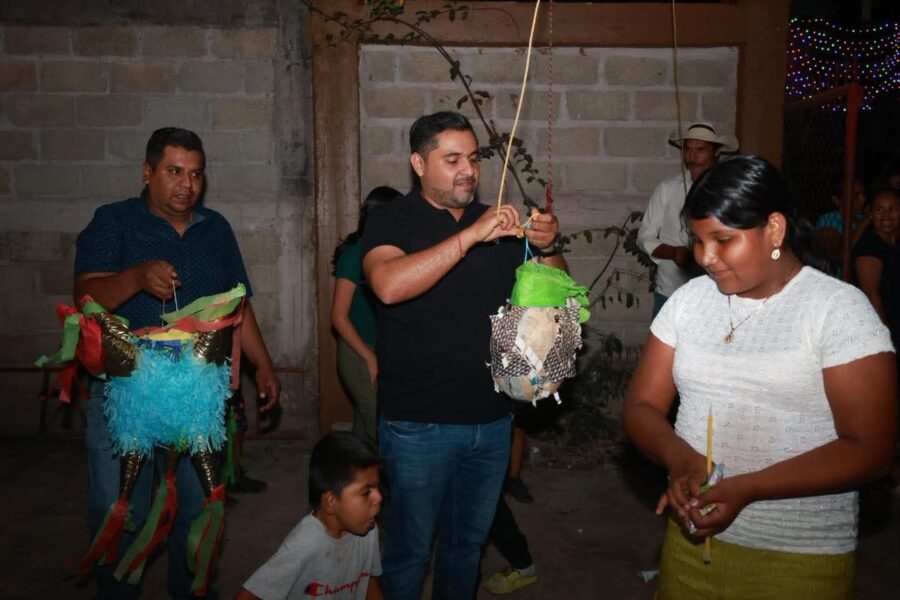 Tuzantla, Michoacán, 22 de diciembre de 2025. El presidente municipal de Tuzantla, Fernando Ocampo Mercado, participó este día en posadas navideñas realizadas en las comunidades de Arroyo Seco, Los Cuitases, El Olivo y la tenencia de El Salitre.