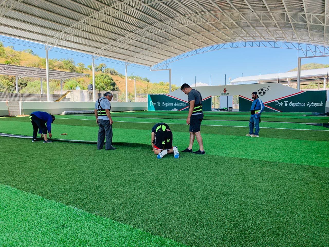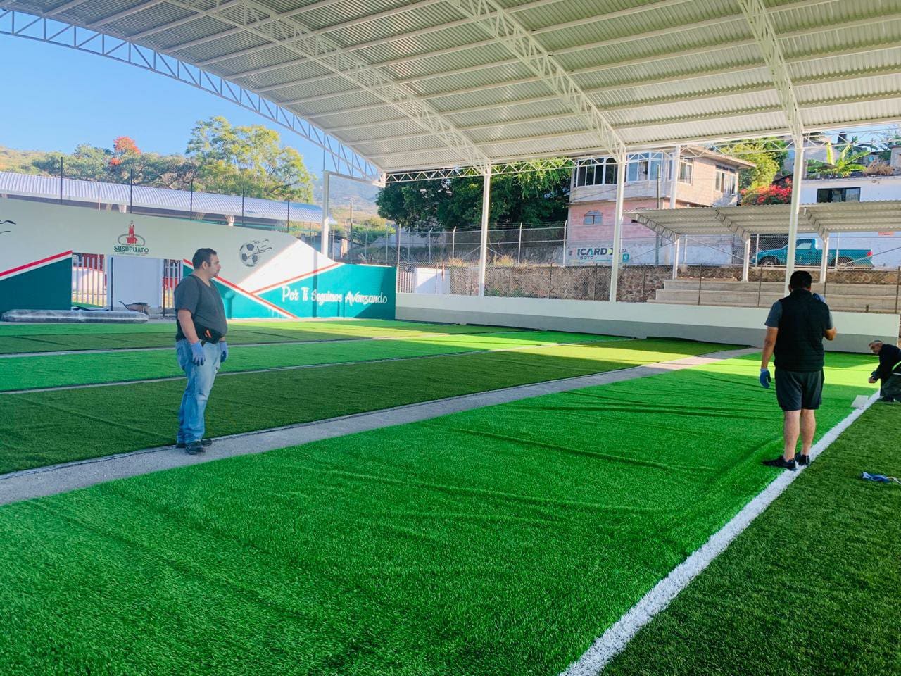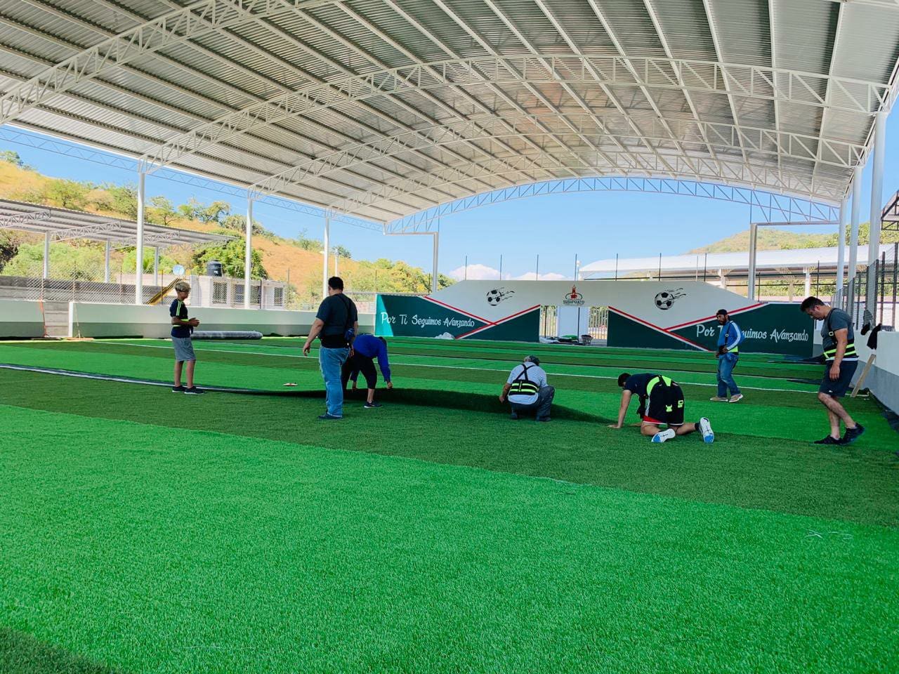 • Avanzan trabajos de la cancha de fútbol empastada en Susupuato