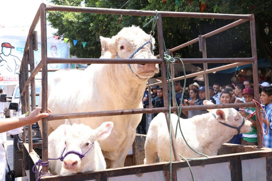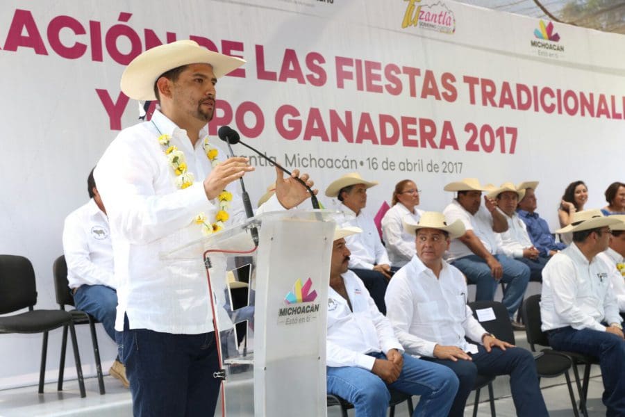 En este sentido, Silvano Aureoles destacó que Tuzantla y diversos municipios de esta parte de la Tierra Caliente se distinguen como uno de los principales productores de ganado, con lo que se pone en alto el nombre de Michoacán, pues producen cerca del 70 por ciento de la ganadería que realiza en el estado.