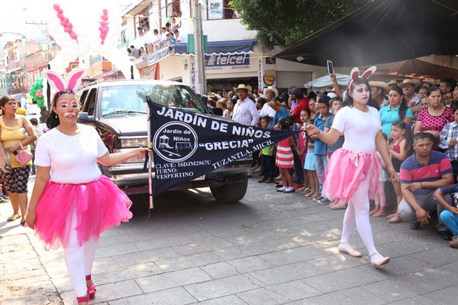 Por la mañana, el Desfile de las Fiestas Tradicionales de Pascua Tuzantla 2017, el cual estuvo lleno de un ambiente familiar y de alegría.