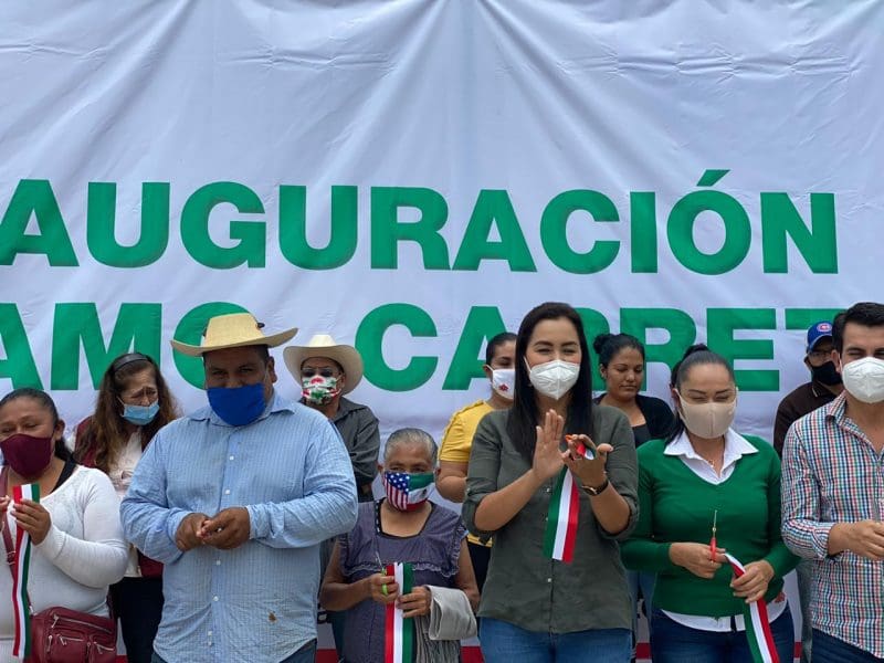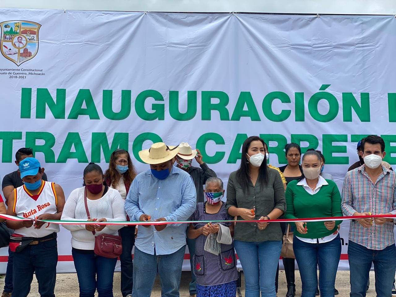 Susupuato, Michoacán. El día de hoy, la presidenta municipal Zayra Olivares Centeno encabezó la inauguración del tramo carretero de la comunidad de Santa Rosa, construido a base de concreto hidráulico.