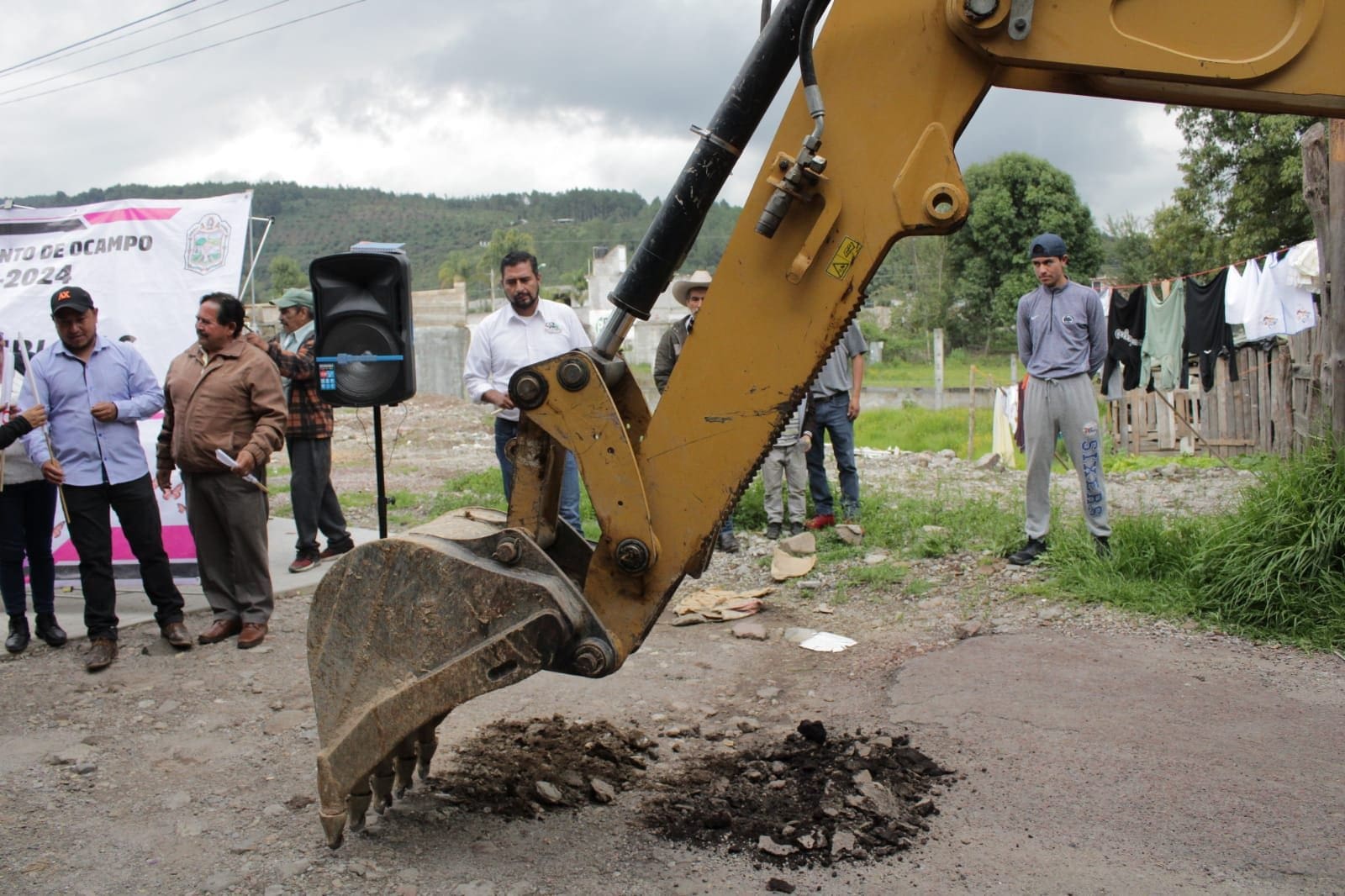 Ocampo,Mich. A unos días de rendir su primer informe de gobierno, el presidente municipal Amado Gómez en compañía de cuerpo Edilicio, Secretario del Ayuntamiento, directora de Obras Públicas y subdirector de Urbanismo se dieron cita para arrancar la 3ra etapa de pavimentación de la calle en la localidad de Emiliano Zapata.
