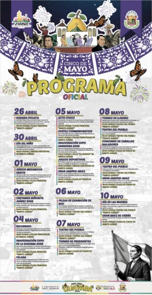 - El 4 de mayo se llevará a cabo un desfile por las principales calles de la cabecera municipal, la inauguración oficial de la Expo de la Guayaba a las 17:00 horas y una velada artística a las 18:00 horas.