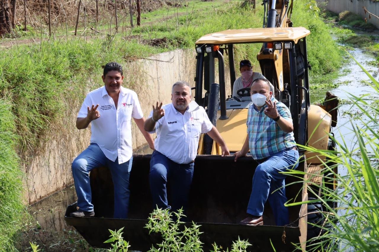 Tuxpan, Michoacán.- El Presidente Municipal de Tuxpan, Lic. Jesús Antonio Mora González, al frente de una brigada de trabajadores del H. Ayuntamiento, realizó la limpieza en los canales pluviales de Río Grande con el fin de dar continuidad a las acciones comprendidas dentro del Plan de Prevención de Contingencias, elaborado para esta temporada de lluvias dentro del municipio.