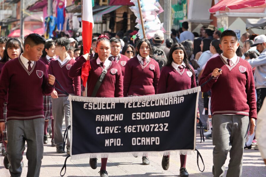 Ocampo, Michoacán, 6 de enero de 2026.- La presidenta municipal de Ocampo, Lety Arriaga, encabezó el acto cívico y el desfile tradicional realizados este 6 de enero en el municipio como parte de las actividades de la Expo Feria Ocampo 2026.