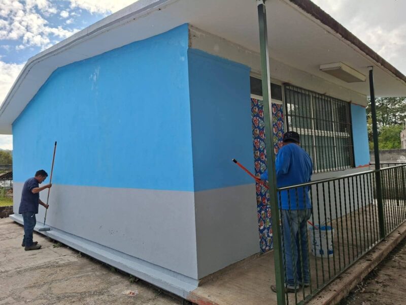 Arriaga también reportó el comienzo de labores de pintura en la escuela primaria Emiliano Zapata, situada en dicha localidad, como parte de las acciones para mantener las aulas en condiciones adecuadas y apoyar la educación.
