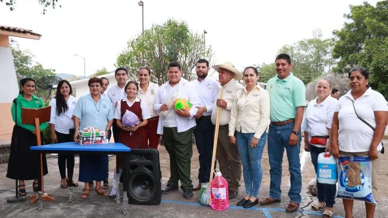 Así mismo la mandataria municipal, aprovechó la ocasión para hacer entrega de un paquete de diversos materiales, tanto de oficina, limpieza y deportivos, con el objetivo de contribuir a enriquecer las diversas tareas que vienen realizando tanto los maestros como el personal de limpieza en favor de las y los alumnos.