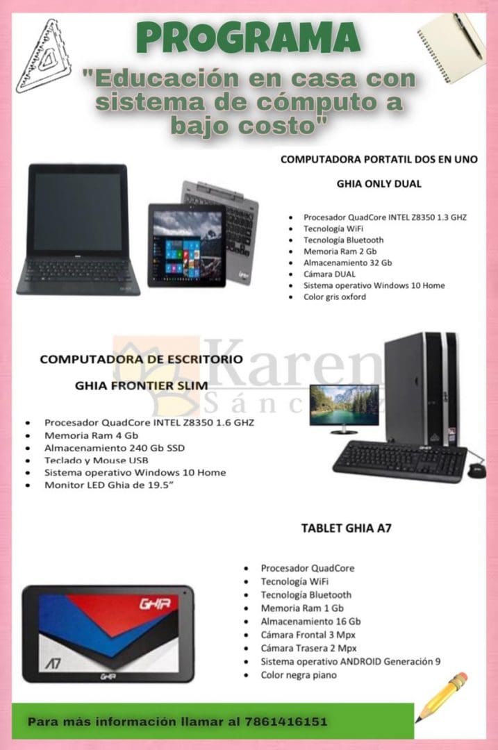 Karen Sánchez, dió a conocer que la población puede adquirir tres equipos diferentes de acuerdo a sus posibilidades, estos son: computadora