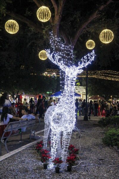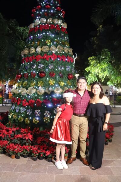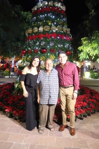 Acompañado por su esposa, la maestra Nancy Zarco Arreola, presidenta del Sistema DIF municipal, y por funcionarios de su gabinete, el edil dio el banderazo para que miles de luces adornaran la fachada del Palacio Municipal, el Jardín Principal “Miguel Hidalgo” y toda la Avenida Madero, principal vía del primer cuadro de la ciudad.