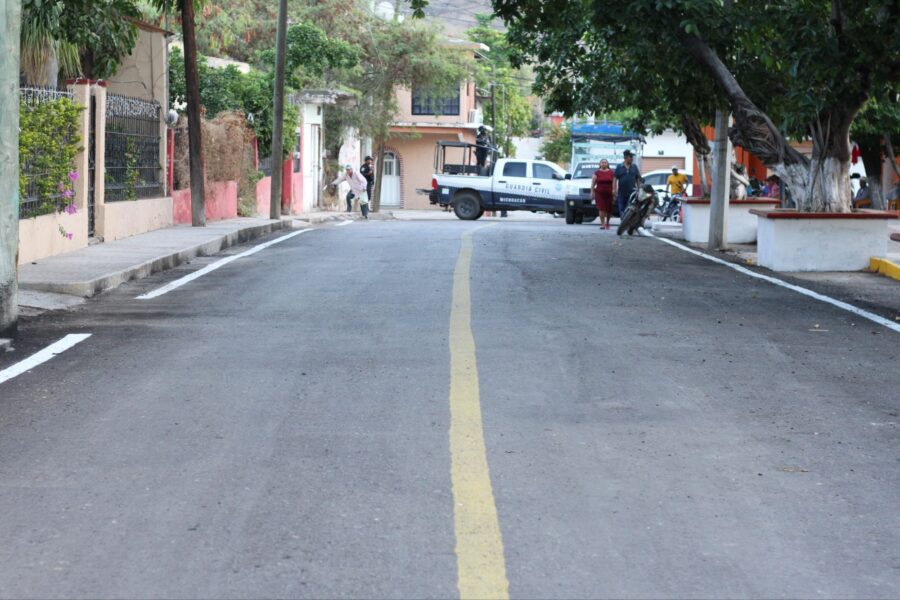 Pablo Varona Estrada inaugura reencarpetamiento de carretera en Turitzio, Huetamo