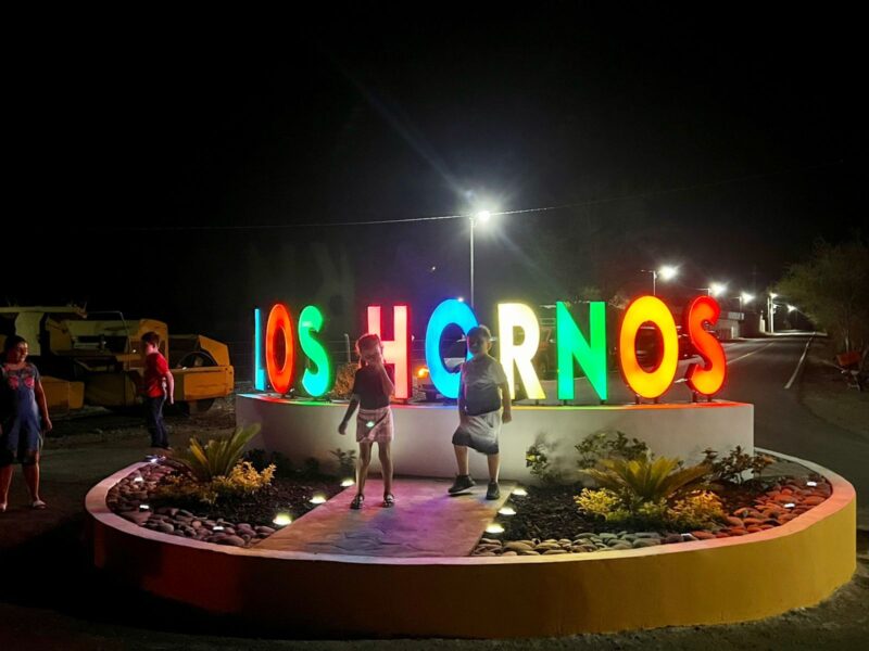 Adicionalmente, Pablo Varona Estrada inauguró una glorieta y un letrero de identidad en la entrada de la localidad, obra realizada mediante aportación conjunta entre la administración municipal y los habitantes de Los Hornos.