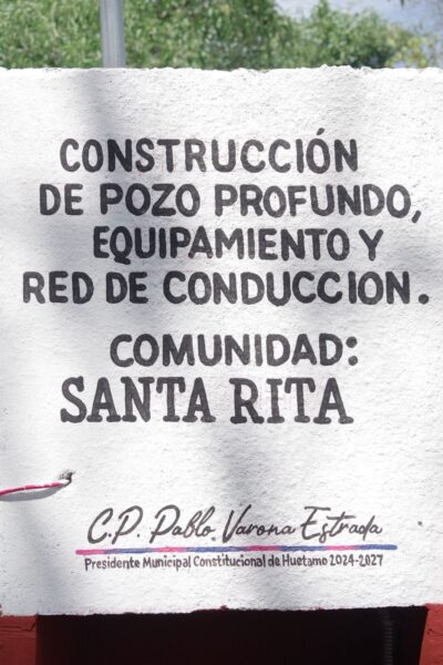 Huetamo, Michoacán, 20 de agosto de 2025. El Presidente Municipal de Huetamo, C.P. Pablo Varona Estrada, encabezó la inauguración de un pozo profundo en la comunidad de Santa Rita, una obra que fortalece el acceso al agua potable para más de 150 familias de la localidad.