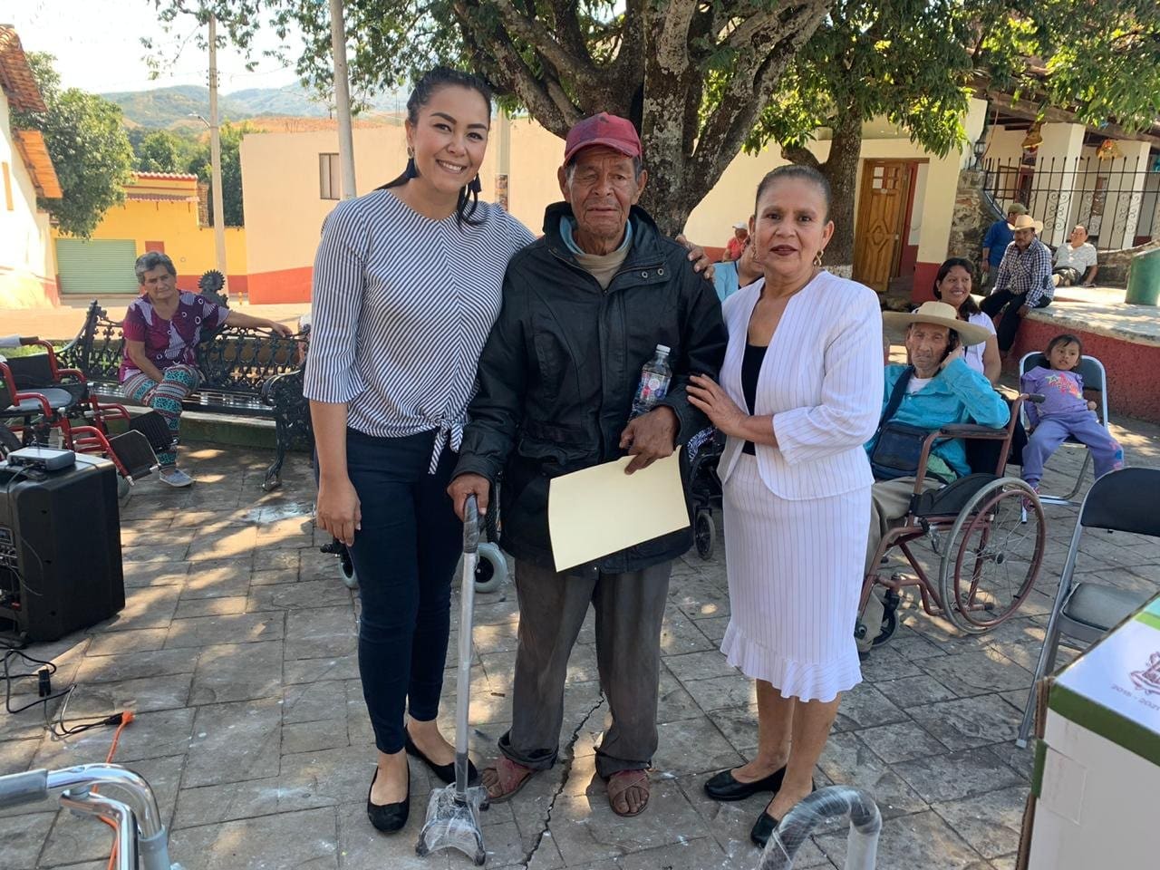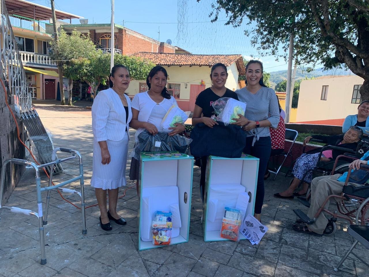 Las comunidades que fueron beneficiadas con estos apoyos fueron: Ex Hacienda, El Carrizal, Maravillas, Los Guajes y Rancho Viejo, donde se entregaron sillas de ruedas, bastones, andaderas y cunas.