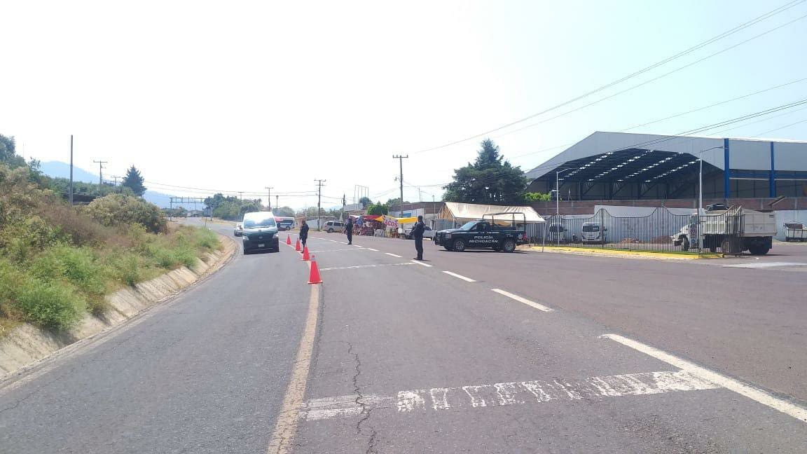 Elementos de Tránsito y Movilidad de la Policía Michoacán en conjunto con autoridades municipales, realizan la entrega de material informativo a automovilistas y pasajeros que transitan por el puesto, ubicado en la carretera que comunica con el municipio de Salvador Escalante.