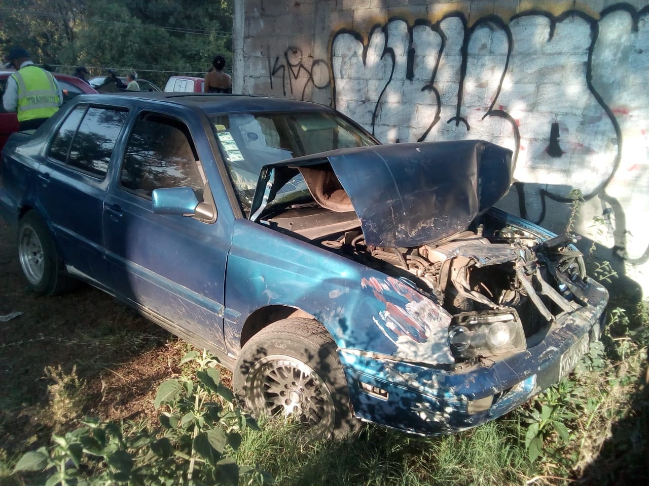 El otro vehículo es un Jetta Volkswagen color azul con placas de la Ciudad de México, el cual se impacta frontalmente, es conducido por el C. “X”, mismo que a la valoración no presenta lesiones aparentes.