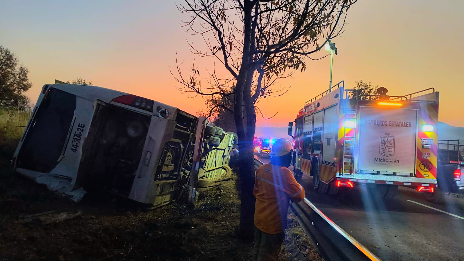 Accidente de autobús en la carretera Morelia-Pátzcuaro deja saldo preliminar de siete fallecidos y 20 heridos