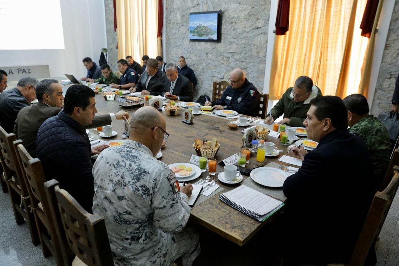 En la reunión estuvieron presentes también el comandante de la XXI Zona Militar, General Gerardo Mérida Sánchez; el secretario técnico de la Mesa de Coordinación para la Construcción de la Paz, Capitán José Francisco Carbajal Balderas; el secretario de Seguridad Pública, Israel Patrón Reyes, y el coordinador general de Fiscalías Regionales y Especializadas de la Fiscalía General del Estado, Nicolás Maldonado Millán.