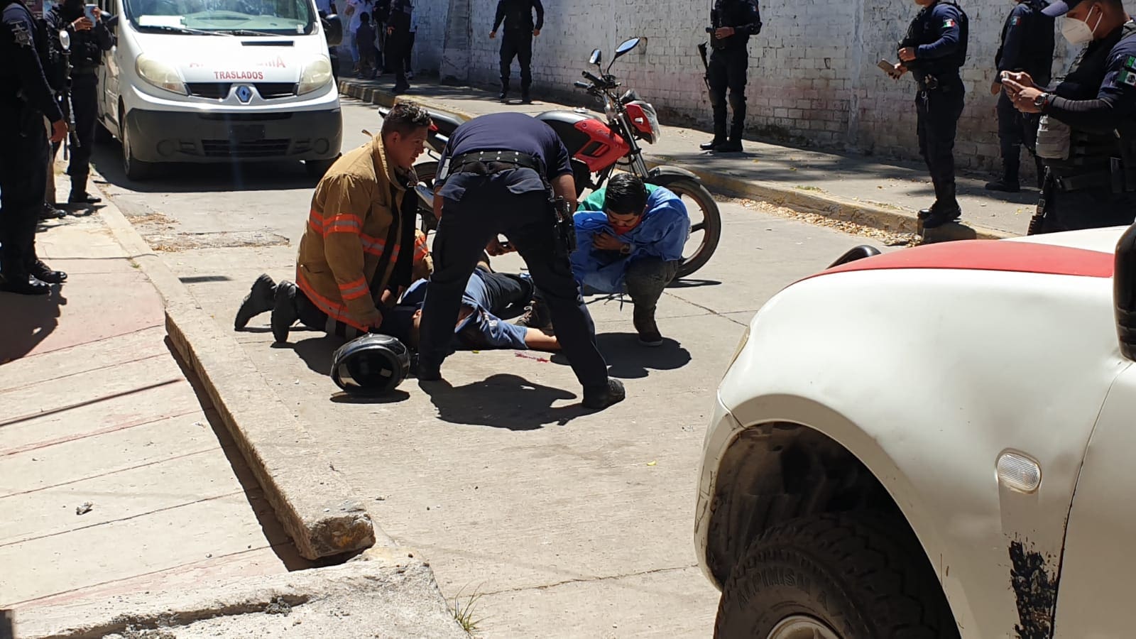Zitácuaro Michoacán. Elementos de seguridad y de auxilio fueron movilizados al medio día de hoy, tras recibir el reporte de una persona lesionada por impactos de arma de fuego, en la colonia Independencia de esta ciudad de Zitácuaro, como referencia, a fuera del Bar La Fuente.