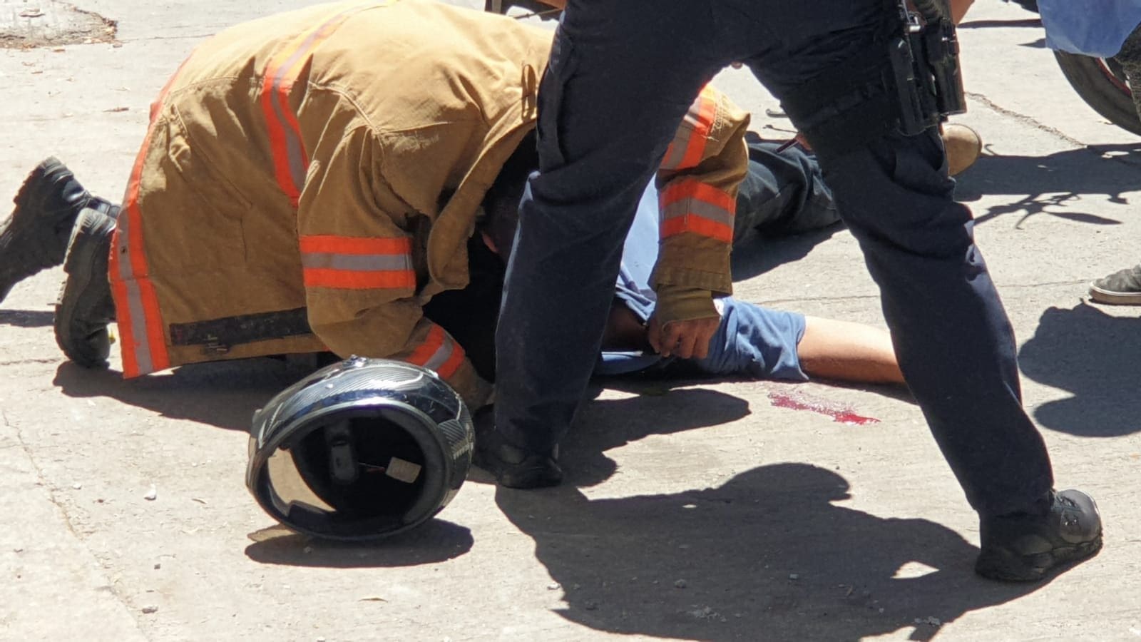 Se trata de un masculino del cual se desconocen generales, el cual se encontró recostado en la cinta asfaltica, a la valoración por parte del personal de auxilio, el lesionado presentó dos impactos de arma de fuego en clavícula derecha sin salida, así como otro impacto más en brazo derecho con salida.