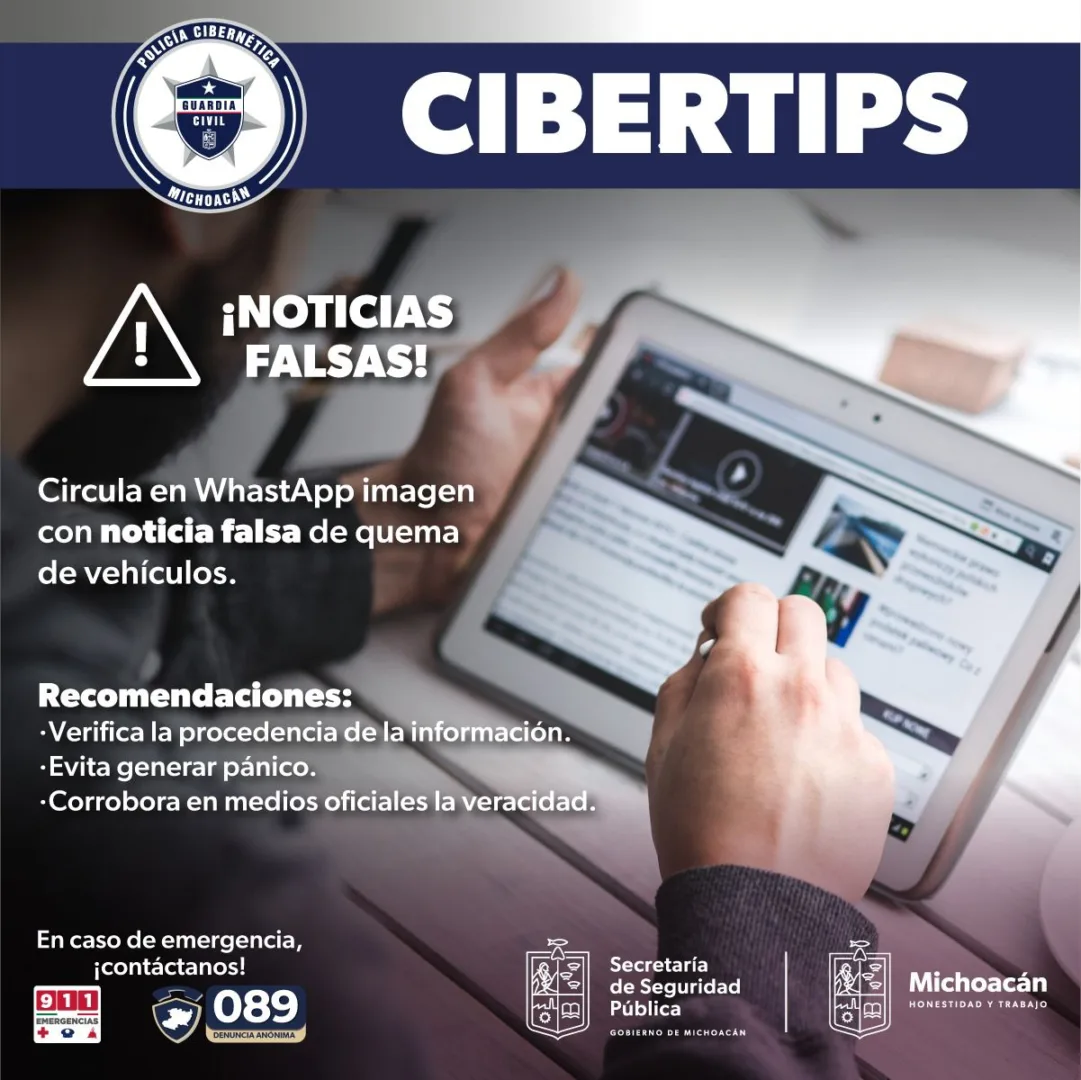 Mediante la Policía Cibernética de la Guardia Civil, se logró detectar una información sobre la supuesta quema de unidades motoras en los municipios referidos, supuestamente para el restablecimiento social, lo anterior es totalmente falso.