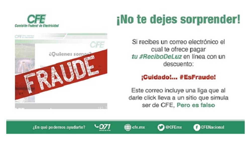 El mensaje de e-mail que llega a las cuentas personales de las y los usuarios suplanta la identidad de la Comisión Federal de Electricidad (CFE); dicho correo, con el asunto: “Último aviso, deuda en su contra”, incluye un archivo en formato PDF para su descarga.