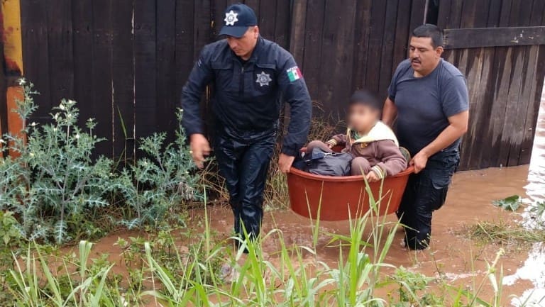 Tras la lluvia de la madrugada del lunes, la acción de la Policía Michoacán fue primordial, las y los policías sacaron a niños, madres e incluso, en respeto y apego a la preservación de la vida, animales callejeros fueron rescatados y arropados por los uniformados.