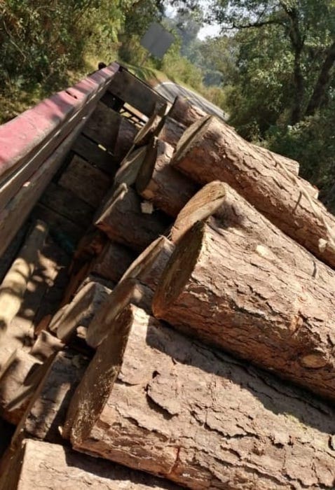 Asegura División Ambiental de la SSP vehículo cargado con madera Ilegal